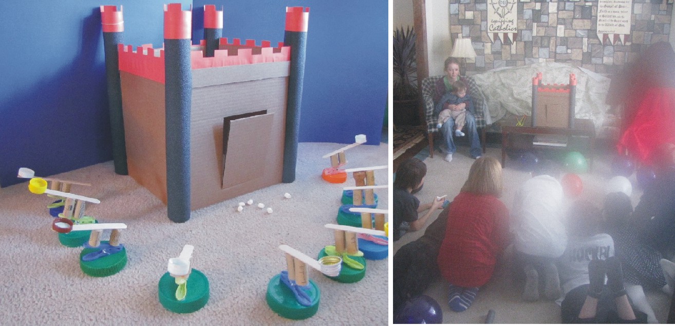 We chose to make just one big castle and enough catapults for everyone to launch their mini-marshmallows.