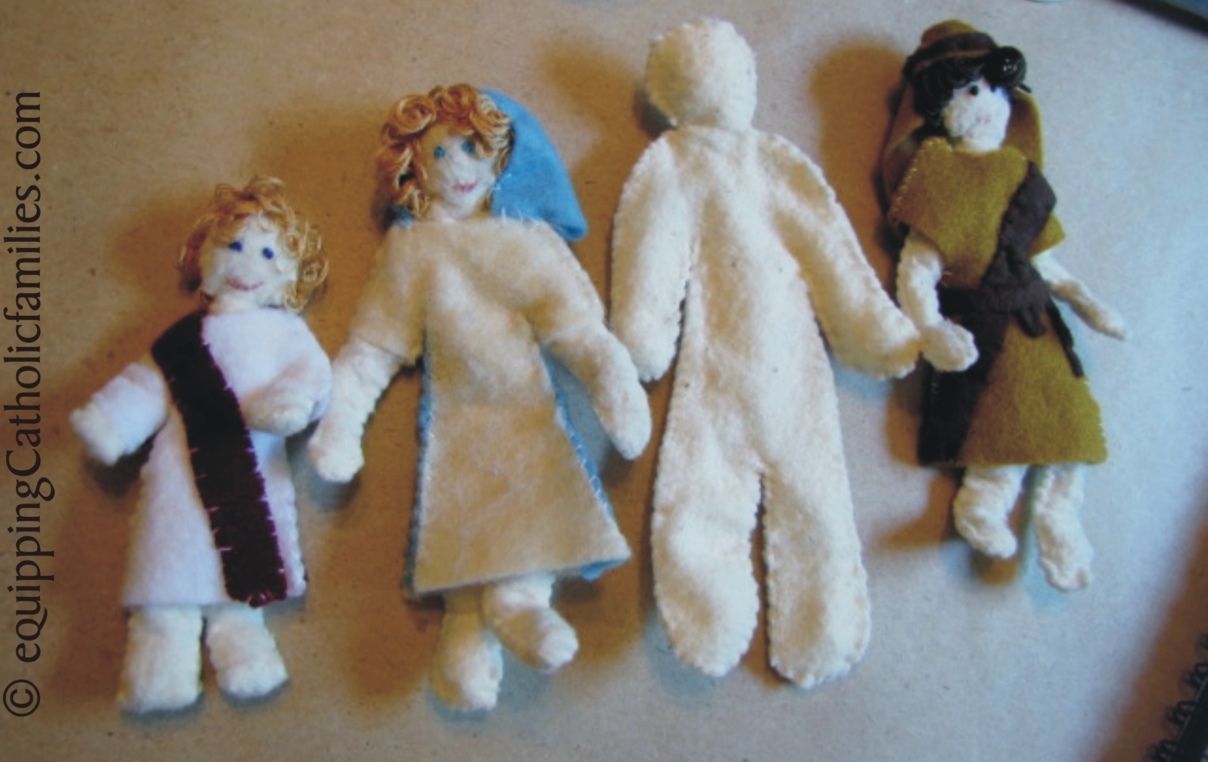 One of our popular crafts from A Treasure Chest of Traditions for Catholic Families is to make little Felt Friends, cute little felt dolls, made pose-able by pipe-cleaners!