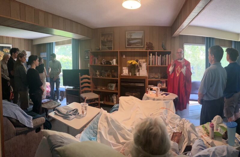 Our close family friend Fr. Roger (who celebrated the Wedding Mass for Kelly and Tiernan), then celebrated the Mass on the Solemnity of Pentecost, at my Mom’s bedside, surrounded by her family and grandchildren.
