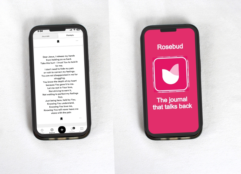 Rosebud offers prompts for Morning Intentions, a Daily Challenge and an Evening Reflection, along with Today’s goals and tailored prompts reflecting my past entries. It is easily accessible on both my phone and my iPad. It offers weekly reports, summaries and analysis of my entries to help me organize my thoughts, review my spiritual journey and even prep for my next meeting with my Spiritual Director.