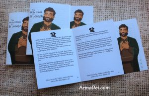 The Cloak of St Joseph Visual Devotional is a 24-page booklet presenting this classic devotion asking for St. Joseph’s intercession and protection under his Holy Cloak. The booklet includes nicely formatted offerings, prayers and supplications, with an extended illustrated cover of prayerful St. Joseph to help focus our prayer and our pursuit of his virtues of humility, patience, gentleness and faithfulness.