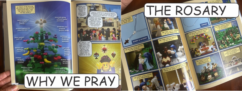 These brick-built scenes are truly captivating for all ages. The book’s layout is stunning, utilizing a comic-style format that is visually engaging and well-organized. Articulate and straightforward, the text serves as an accessible guide for children, converts, and lifelong Catholics alike, offering a clear exploration of the ‘how’ and ‘why’ of Catholic prayer.