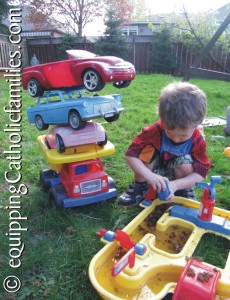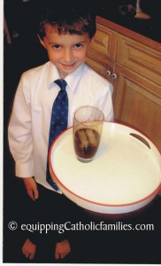 Up here in Canada…we are just finishing school and our summer is just getting started! I hope to use a more relaxed schedule to highlight our family activities and traditions showcased in the Ordinary Time section of A Treasure Chest of Traditions for Catholic Families. These posts will become part of the Family Fun section on this site and will also include our “At-Home” Birthday Parties posts (and printables) and other traditions and routines that are not specifically Catholic, but bring our family together in some way. My Dad wrote down the funny things that my brother and I said when we were little…and I have done the same for my five kids.  I do have a little hardcover journal book for each kid, but I find it most convenient to write the funny quotes on my Mom’s Fridge Calendar…as they happen, because even though I think I’ll remember who said what and when, I have learned that the details get blurry. It’s amazing how their antics can blend together! The fridge calendar is easy to access and it already captures our family events, milestones, trips, medical appointments and phone numbers…so I find calendars useful for reference, years to come!  Every once in a while, I transpose the little dated moments into cute little dollar store books: one for each child.  I have recorded first words, dates the teeth came in or out and monumental “firsts” including Sacraments. Just ask me…(and I can look it up!)…which kid said “to da-vity and beyon’!” (quoting Buzz Lightyear), who challenged potty training “Mommy, your job is not my problem!” , who sang “ring around the rosary”,  who was my only kid to fall asleep on the toilet and who made the biggest mess… necessitating more than a couple impromptu baths in the sink.