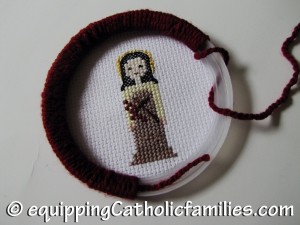 My friend Nancy at Do Small Things with Love has created 36 Catholic Saint Cross Stitch patterns and has invited a troop of crafty kids to make them…including my 9 year old Bridget!