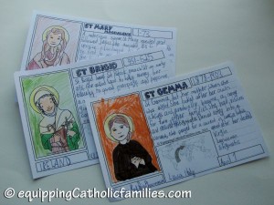 One of the coolest things I have done with the new Saint Scripts Craft Kit is to add the 22 new full color Saint postcards… to my Saints Rolodex. It’s easy to flip through the alphabetically assembled saints for quick facts: an easy reference tool!