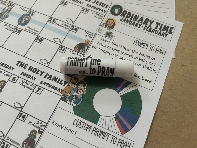 ORDO: ORDINARY TIME presents the first 5.5 week span of Ordinary TIme from January 11-February 17 (Pancake Tuesday) with illustrated Saints Feast Days and prayer prompts for the Monthly Devotions of The Holy Name of Jesus (January) and The Holy Family (February).