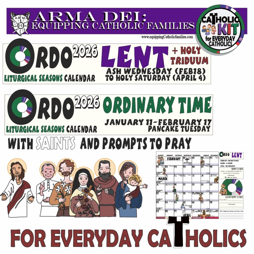 This Catholic Printable is FREE for YOU to enjoy with your family! Please do not share the PDF with your friends, but instead, please direct them to THIS page to enjoy their own copy and stay connected with Arma Dei: equipping Catholic families!